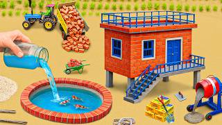 DIY Mini Tractor Making Modern Bricks House 🏠 Smart Science Project | Mini Construction Video
